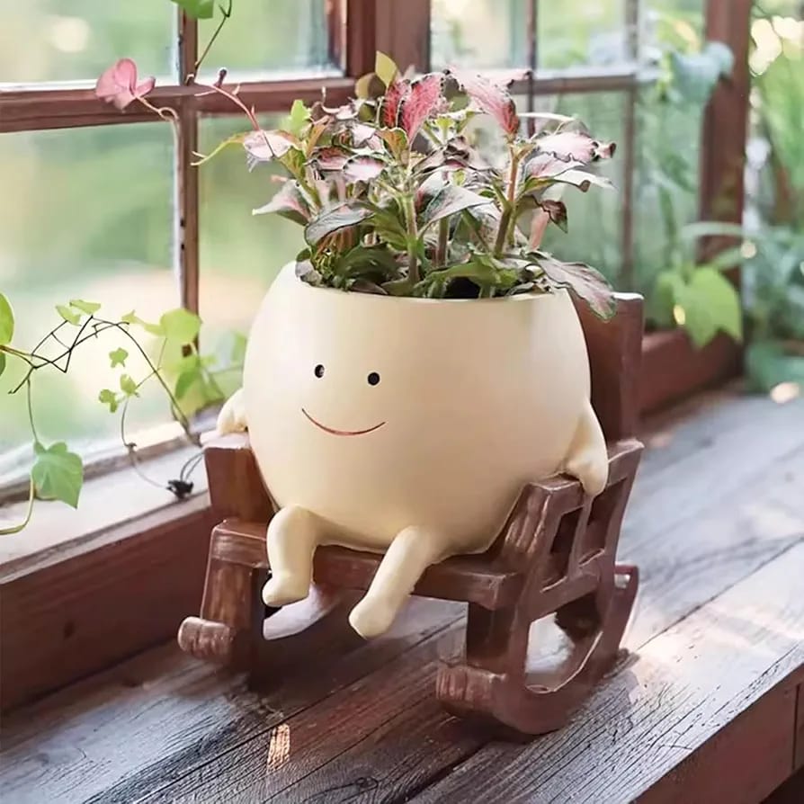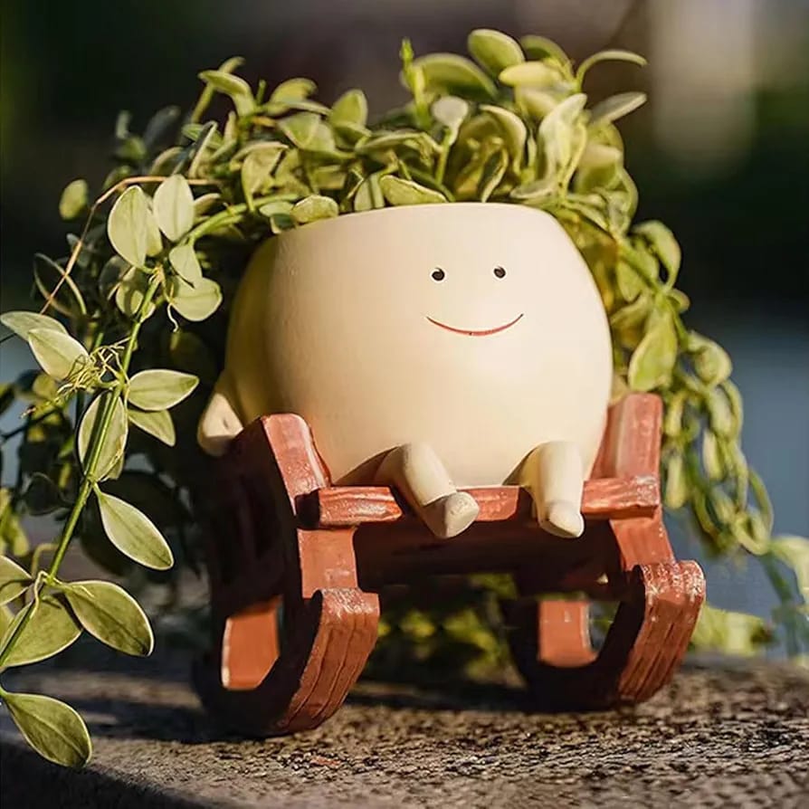Elegant Poly Resin Cute Smliye Face Swing Flower Pot  Showpiece, symbolizing grace and prosperity. Perfect for home dÊcor, office desk, or gifting.