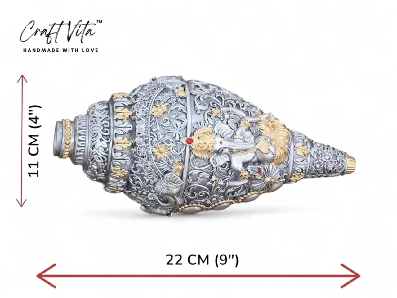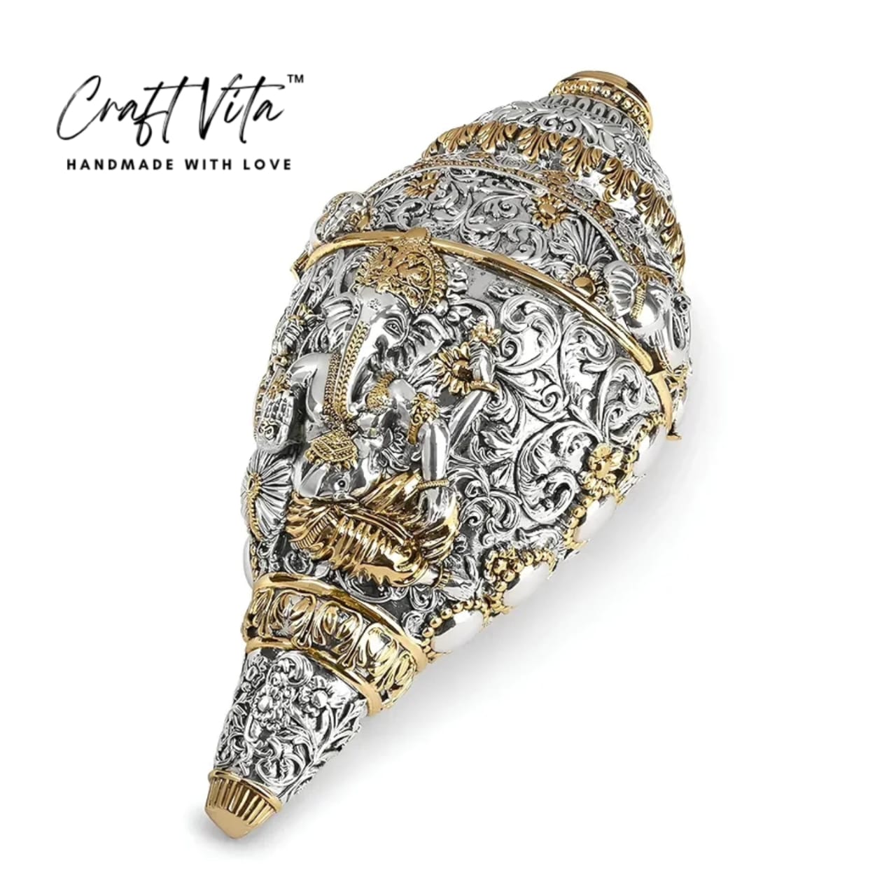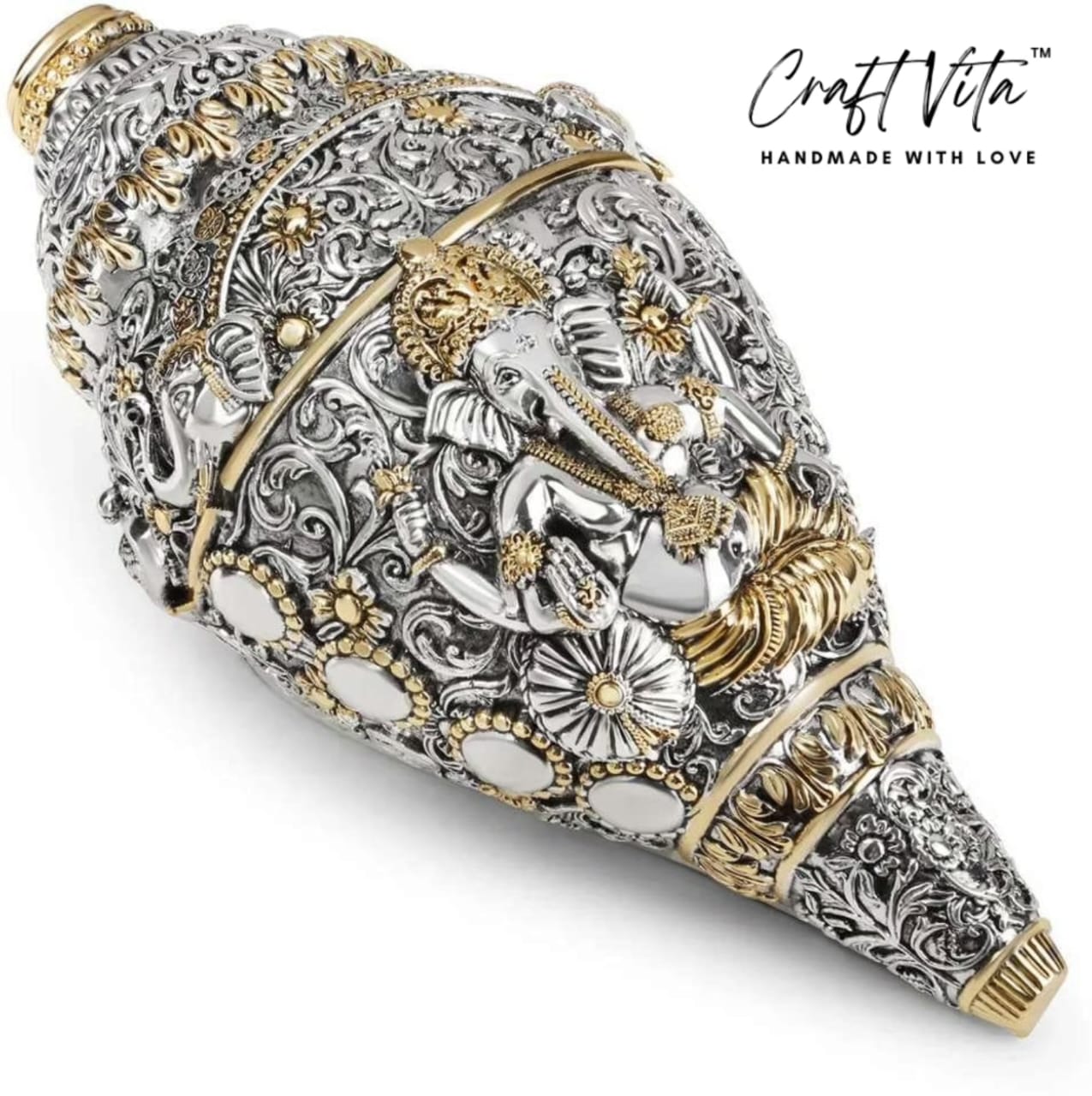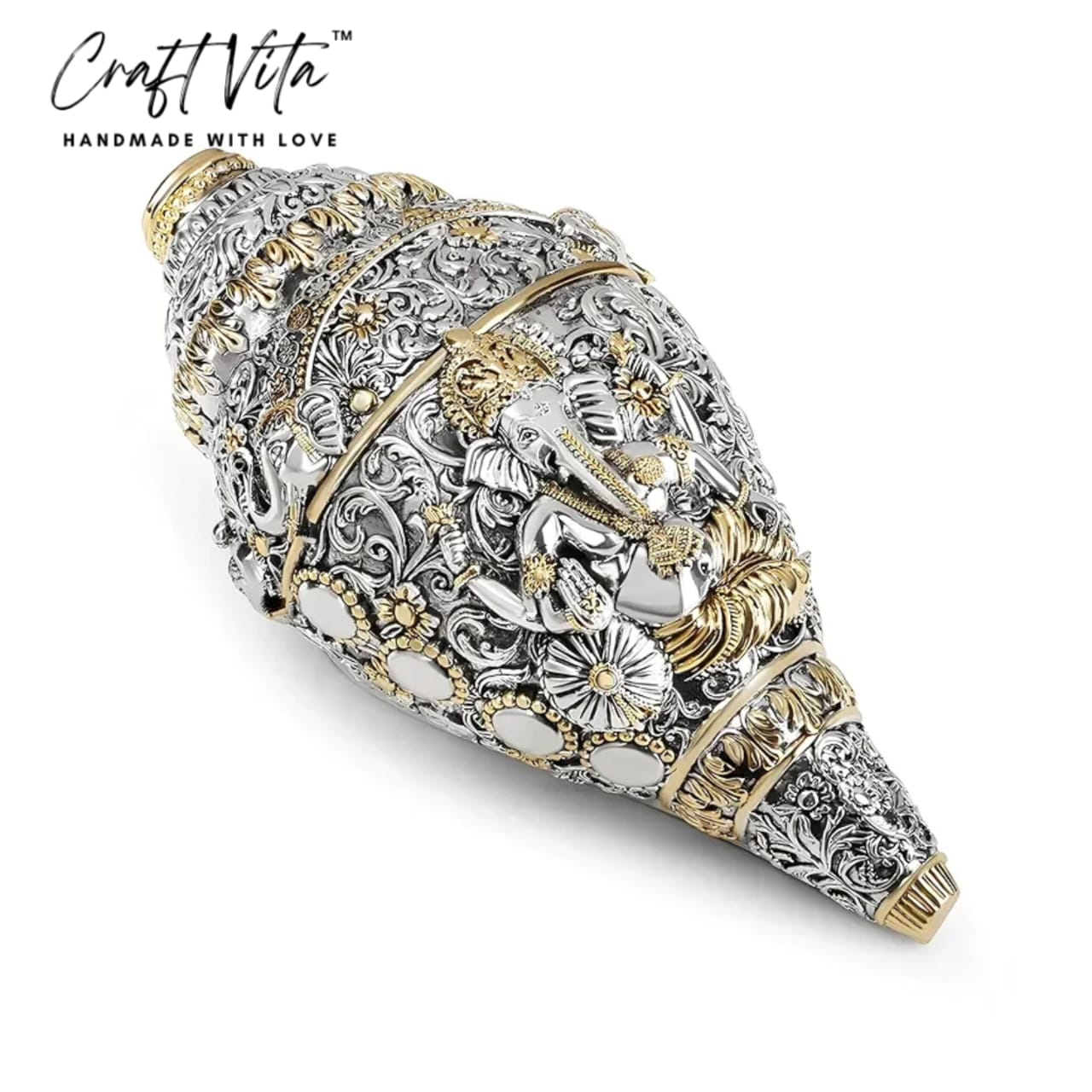 Lord Ganesha Shank– Good Luck Intricate Design Home & Temple Décor