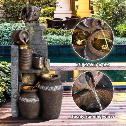 This Water Fountain is Made of Fine Grade Poly fiber with special coating of paint to make it weather resistant includes LED Lights.