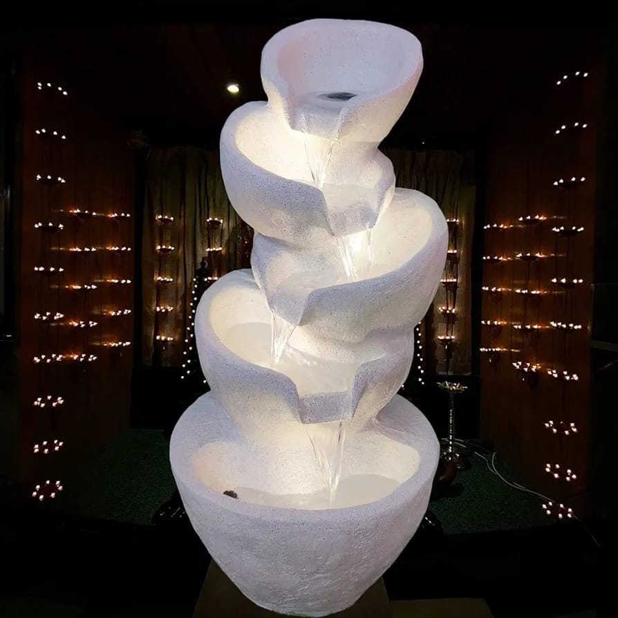 It enhances the beauty of indoor or outdoor spaces (like living room, balcony, garden)  It can help maintain some degree of moisture in the air through evaporation. It is also a popular item for gifting on various occasions. It consists of a pump that pushes water upwards, causing the water to fall down in the form of a waterfall and collect in a basin, from where it is pumped out again.